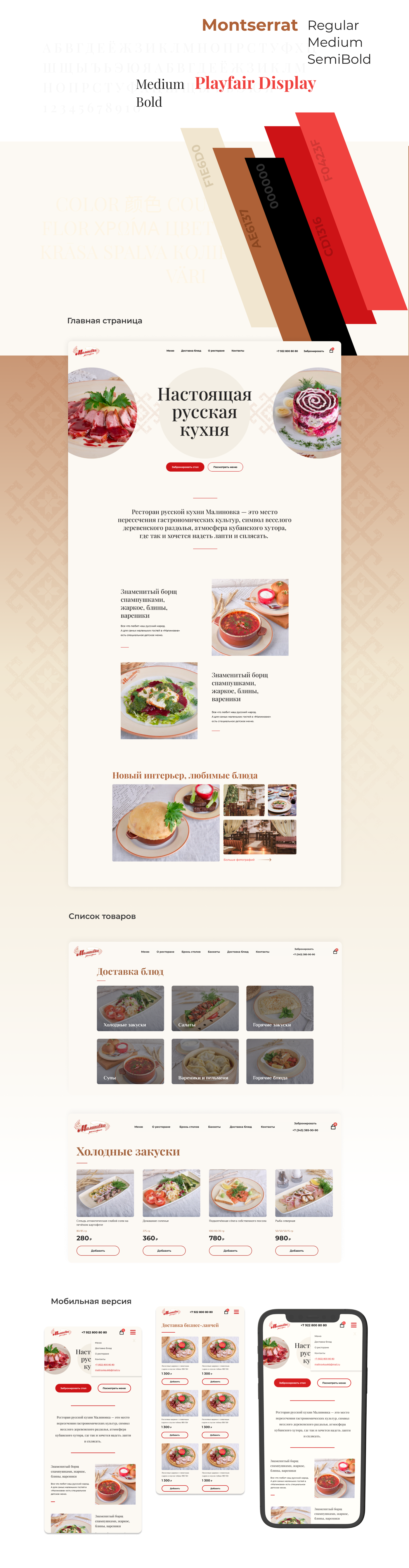 Ресторан "Малиновка", разработка сайта