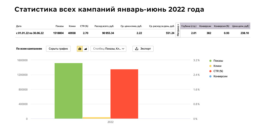 Цена клика - 2,22 руб