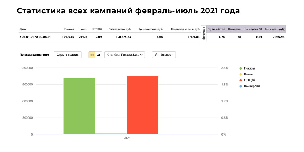 За январь 2021 года мы провели базовую Seo оптимизацию сайта и устранили на нём ошибки, тем самым подготовили его к настройке контекстной рекламы в Яндекс Директ.